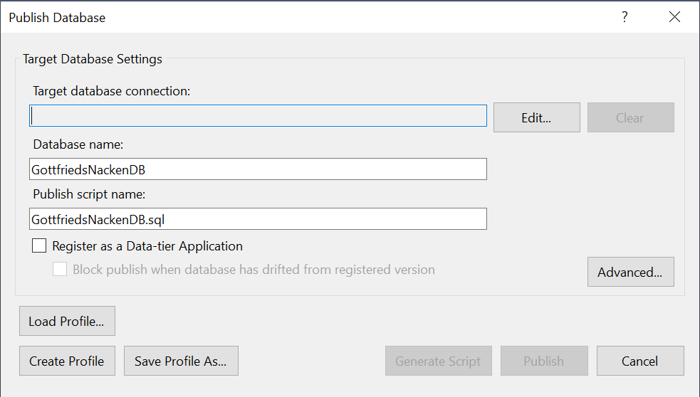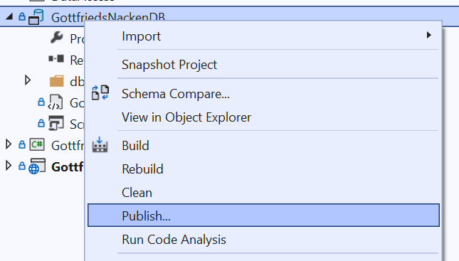 Rechtsklick auf das Projekt GottfriedsNackenDB und Publish... auswählen.