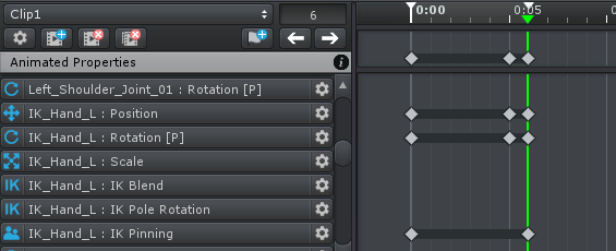 The good news is that UMotion automatically creates these keys whenever a new parent key is created. But it is in your responsibility to keep those keys up to date. That means that whenever you move or delete the parent key you need to move or delete the position/rotation keys accordingly.