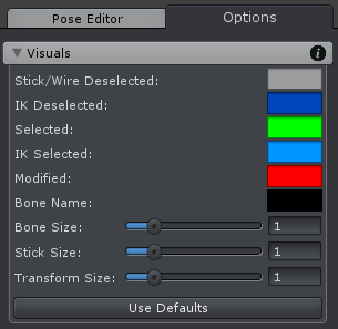 Settings for all visuals. The options are stored in the project file. The same options can be reached from the Pose Mode and from the Config Mode.