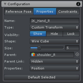 | Type | The type of the selected joint/transform. It can be changed from custom joint to custom transform or vice versa. Only possible for custom joints/transforms. |